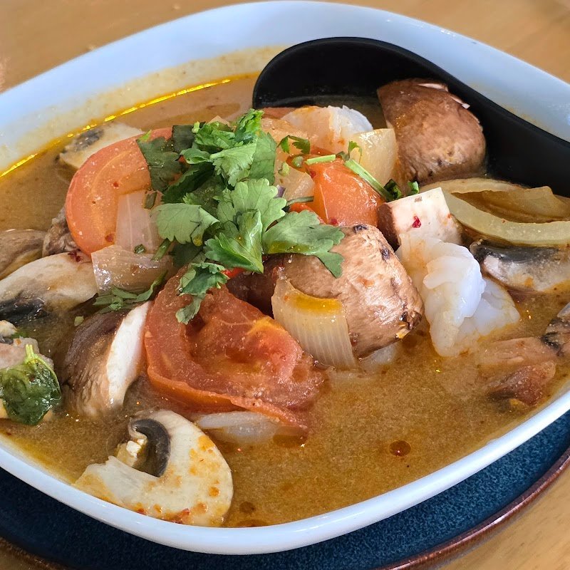 From the second you walk in you are greeted with a smile, most likely the lovely Elle, as well as the fresh and delicious aromas of Thai cooking! Please note, best to book as they are very popular! Once seated, you are brought chillrled filtered water which will no doubt be topped up constantly without fuss throughout your dining experience. The menu is simple but there's something for everyone! The photos I will attach are of the massaman curry and the Thai beef salad,...the beef in the curry was impossibly tender and the portions are fantastic! All food is cooked fresh with brightly coloured vegetables and no msg! The tables are of generous size, the wines are delicious, and the food is exceptional! Thank you to all staff at Dinn Thai and I will see you again soon! ๐คฉ๐๐