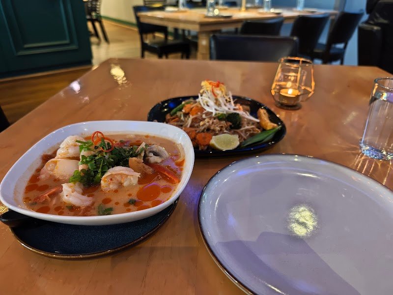 Near our hotel so dropped in for dinner on a Sunday night. Restaurant was super full - and with people streaming in even after we sat down. I was surprised with the crowd given that the street was very quiet! There were only 2 service staff visible and one even doubled up as cashier - bless them! Staff were polite and attentive Food order came very fast despite the packed restaurant. And food was great too! We had prawn Tom yum, chicken satay, pad see ew (flat rice noodle) with beef, and dinn thai fried rice. Finished off with mango sticky rice. Apart from the mango not being sweet we were overall happy with the food. Would recommend!
