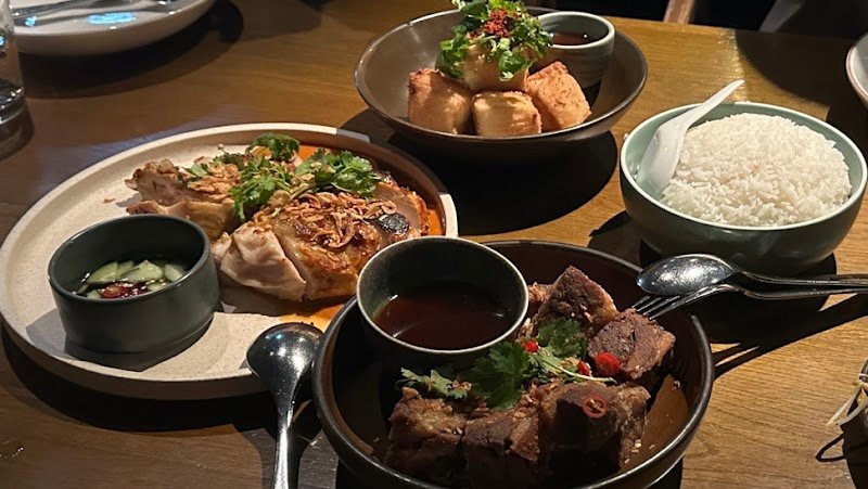 Pretentious, overpriced, not Thai food. Some dishes were good- including the snapper, fried pork and softshell crab. Iโve eaten Thai food all over the world including Thailand. This place is more concerned with being modern and different than it is with presenting authentic Thai flavors. Yellow shrimp curry was the biggest disappointment. Overly bitter and acidic. Punishingly spicy without the compliment of coconut milk. How can you call a Thai curry a Thai curry if it has no coconut milk? The fried tofu was so wet and runny it was inedible. No rice noodles on the menu. Some average dishes, none great, some so outright bad they ruined our night. We had to order more food because the 130$ tasting portions werenโt big enough. The meal was not worth 350 AUD.