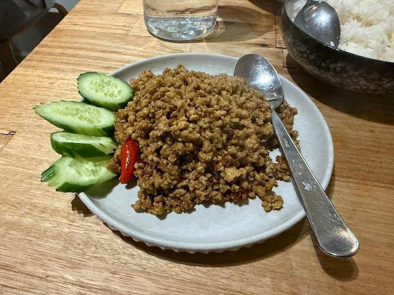 We had the red curry and the ka prow, along with an entrรฉe-sized tom yum vegetable soup. The tom yum was quite sour for our taste, which we werenโt huge fans of, but we still appreciated the generous portion size for an entrรฉe. The other dishes were tastyโI especially enjoyed the ka prow with beef. The curry was a bit heavily seasoned for my liking, but still flavorful. The place itself is quite small and compact, so it felt best suited for groups of up to four people.