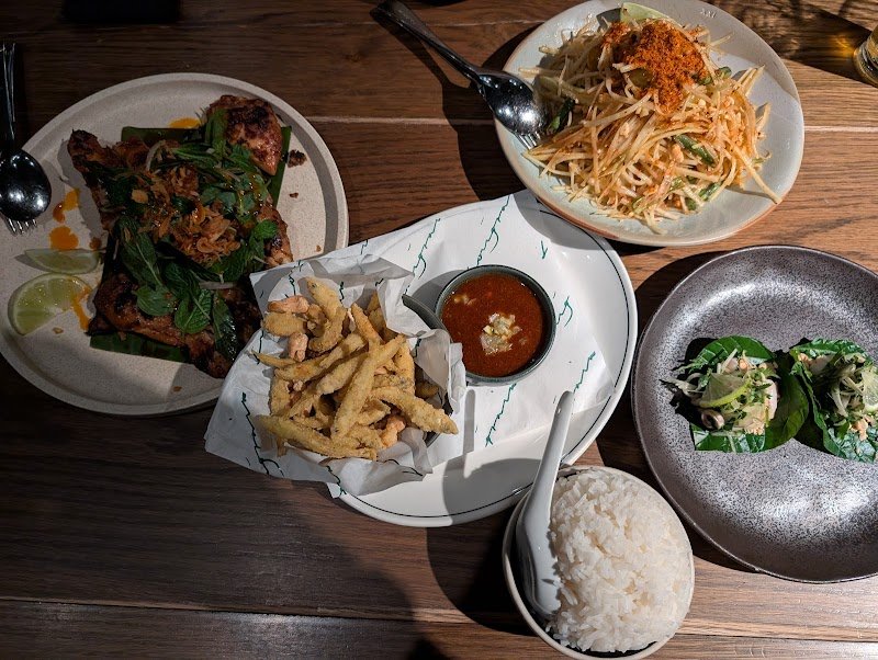 Pretentious, overpriced, not Thai food. Some dishes were good- including the snapper, fried pork and softshell crab. Iโve eaten Thai food all over the world including Thailand. This place is more concerned with being modern and different than it is with presenting authentic Thai flavors. Yellow shrimp curry was the biggest disappointment. Overly bitter and acidic. Punishingly spicy without the compliment of coconut milk. How can you call a Thai curry a Thai curry if it has no coconut milk? The fried tofu was so wet and runny it was inedible. No rice noodles on the menu. Some average dishes, none great, some so outright bad they ruined our night. We had to order more food because the 130$ tasting portions werenโt big enough. The meal was not worth 350 AUD.